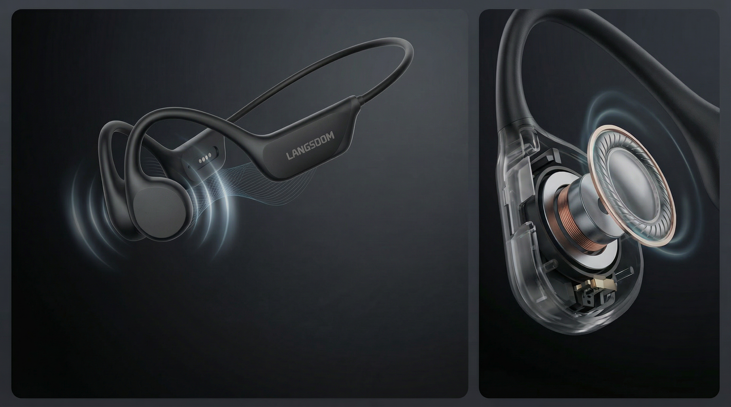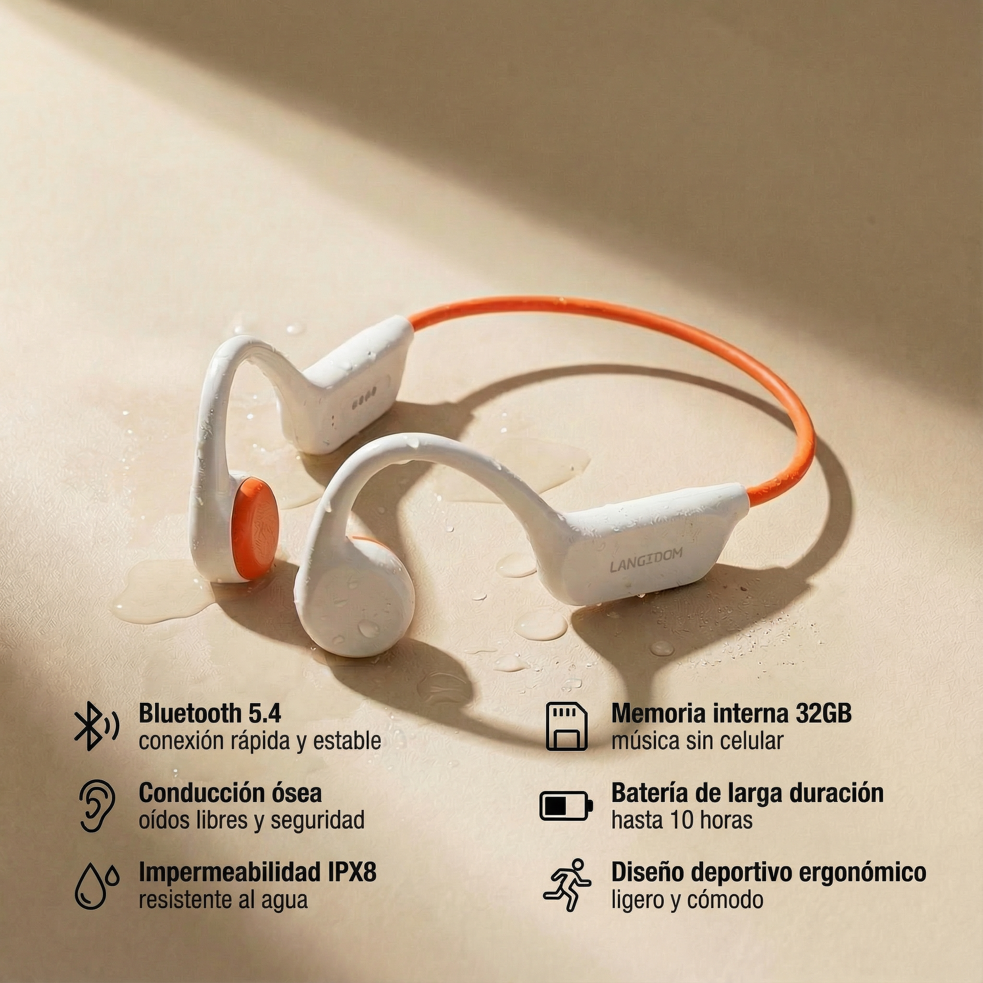 Los audífonos de conducción ósea Langsdom BE17 están diseñados para acompañarte en cada momento activo del día. Su tecnología de conducción ósea te permite escuchar música sin bloquear los oídos, ideal para running y entrenamientos al aire libre, manteniéndote atento a tu entorno. Gracias a su resistencia total al agua IPX8 y memoria interna, también son perfectos para natación, ofreciendo libertad, seguridad y comodidad en cada movimiento.