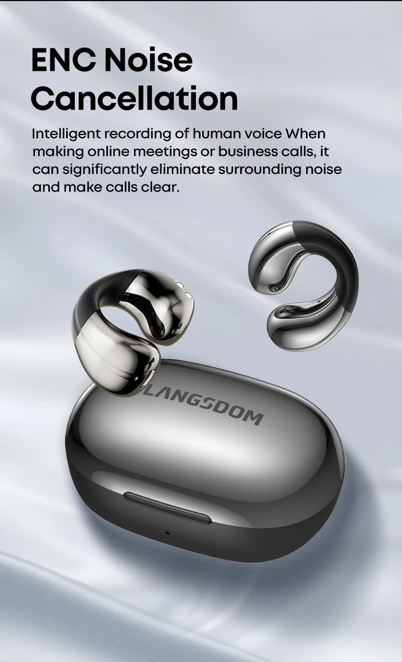 Presentamos los Auriculares Inalámbricos Langsdom TS22, diseñados para ofrecer una experiencia auditiva superior durante tus actividades deportivas y cotidianas. Equipados con tecnología Bluetooth 5.4 y un diseño Open Wear Style (OWS), estos auriculares garantizan una conexión estable y una transmisión de sonido de alta calidad sin bloquear tus oídos, permitiéndote estar atento a tu entorno.
