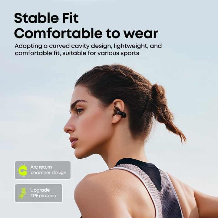 • Diseño Open Wear Style (OWS): Permite escuchar música sin bloquear el canal auditivo, manteniéndote consciente de tu entorno mientras disfrutas de tu contenido.